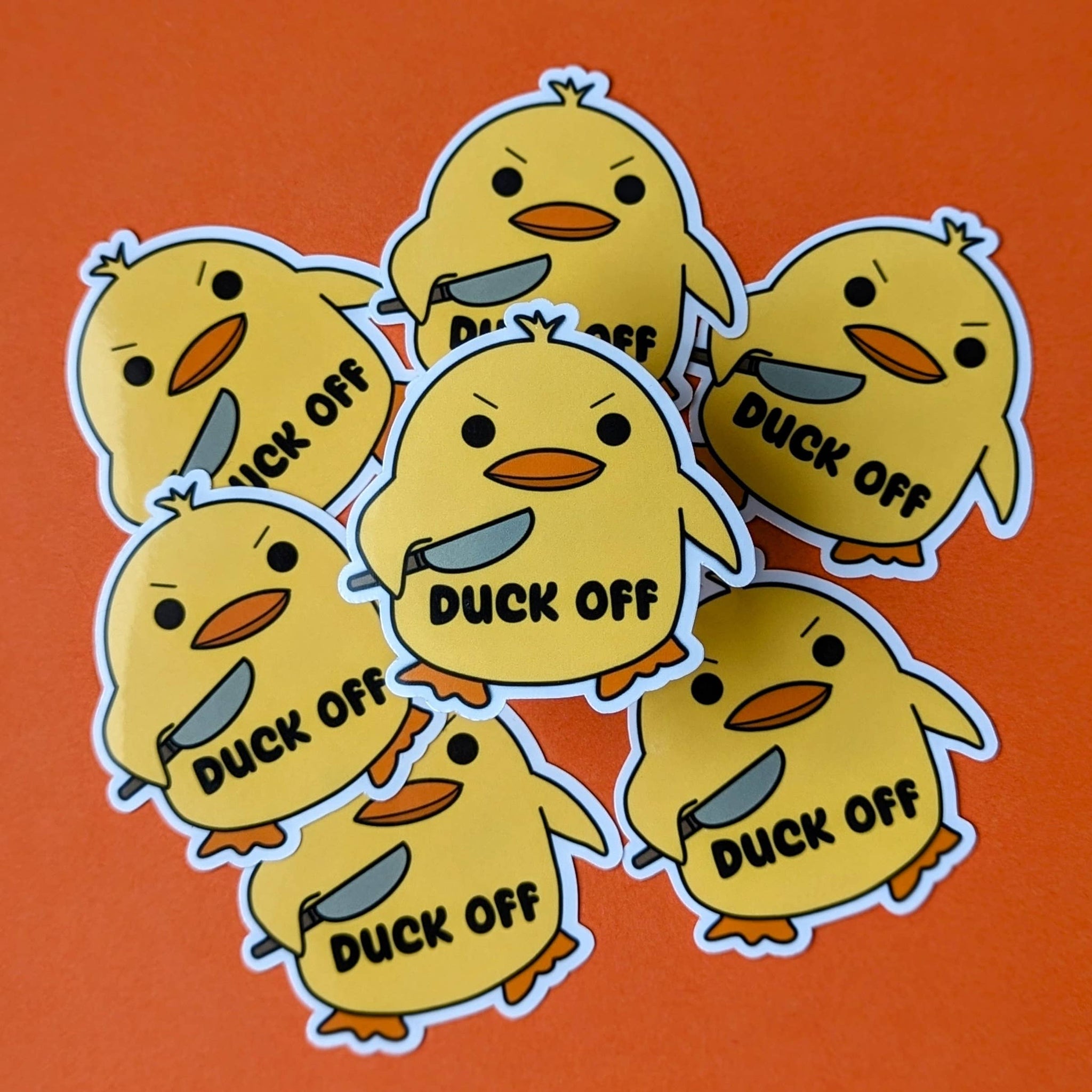 Duck off vinyl sticker, funny animal sarcastic merch: Loose