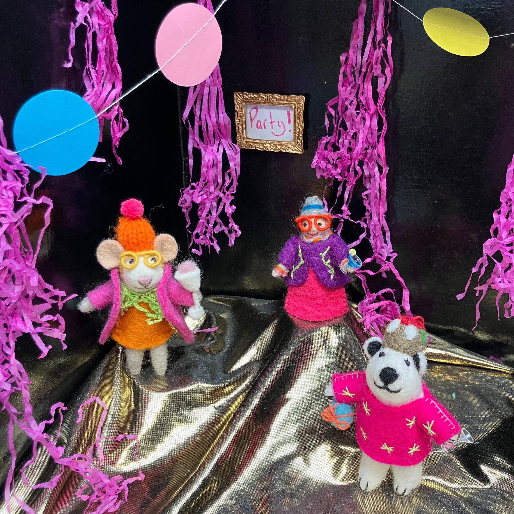 Introducing Margie the Merry Mouse, the sassiest rodent this side of the North Pole! This needle-felted diva is not your average mouse—she's here to sleigh the holiday scene and serve looks hotter than chestnuts roasting on an open fire. Her sassy outfit consists of bright yellow wool wrapped wire glasses, a handknitted orange and pink bobble hat plus jewellery made from organic cotton. She's got a martini glass stitched into her paws, reminiscent of your favourite pi**ed up Auntie at the family Christmas do! Let's toast to the most wonderful time of year and the artisans who brought Margie to life under fair trade working conditions in Nepal.